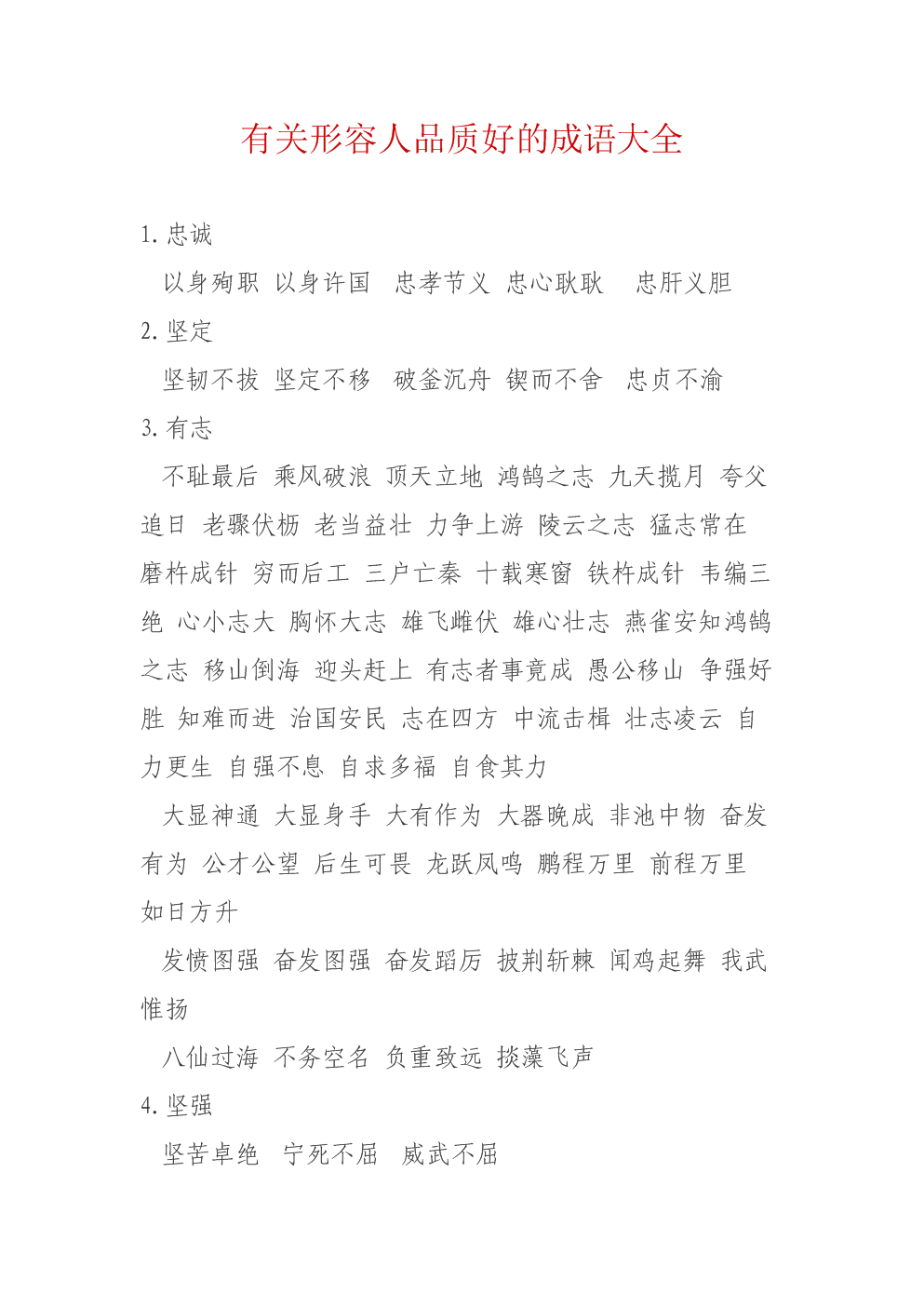 有关形容人品质好成语汇总.doc
