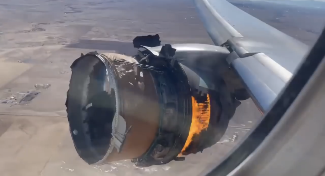 飞机正在上空飞行,发动机起火