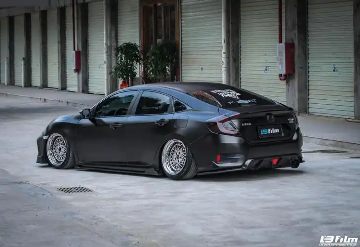 广州车友打造低趴10代本田思域,黑武士的风格杀气腾腾!