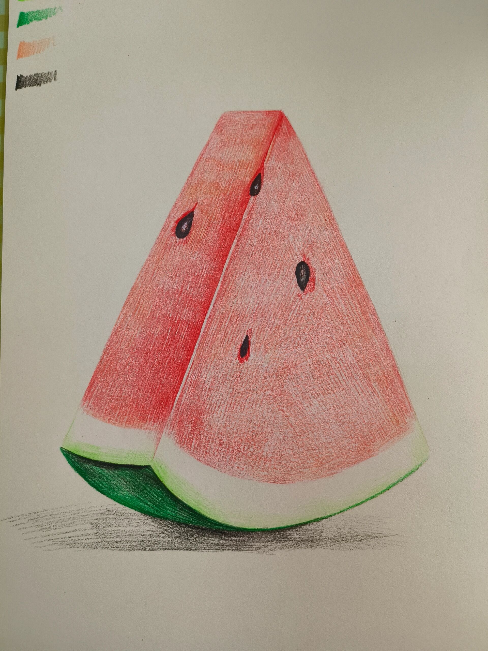 适合初学者临摹的彩铅水果西瓜 这个更适合初学者