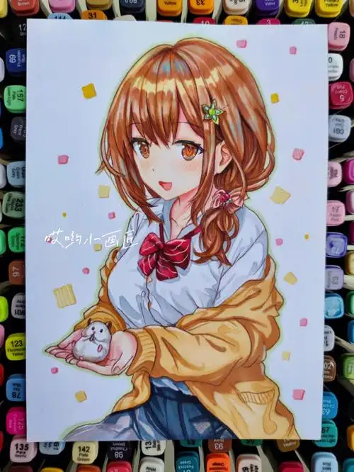 q版动漫女生人物马克笔手绘附线稿