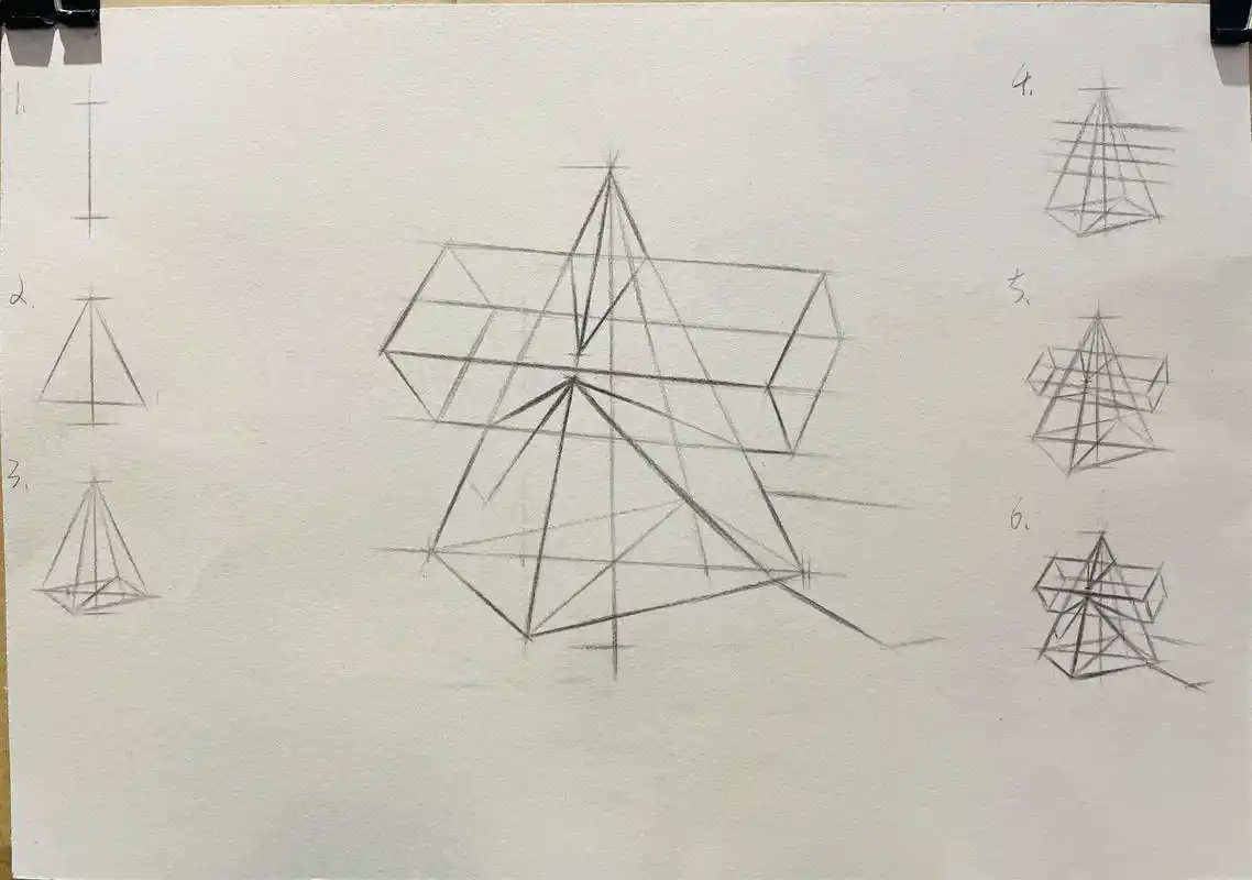 结构素描[几何体—四棱锥与长方体穿插体]单个几何,讲解一个穿 - 抖音