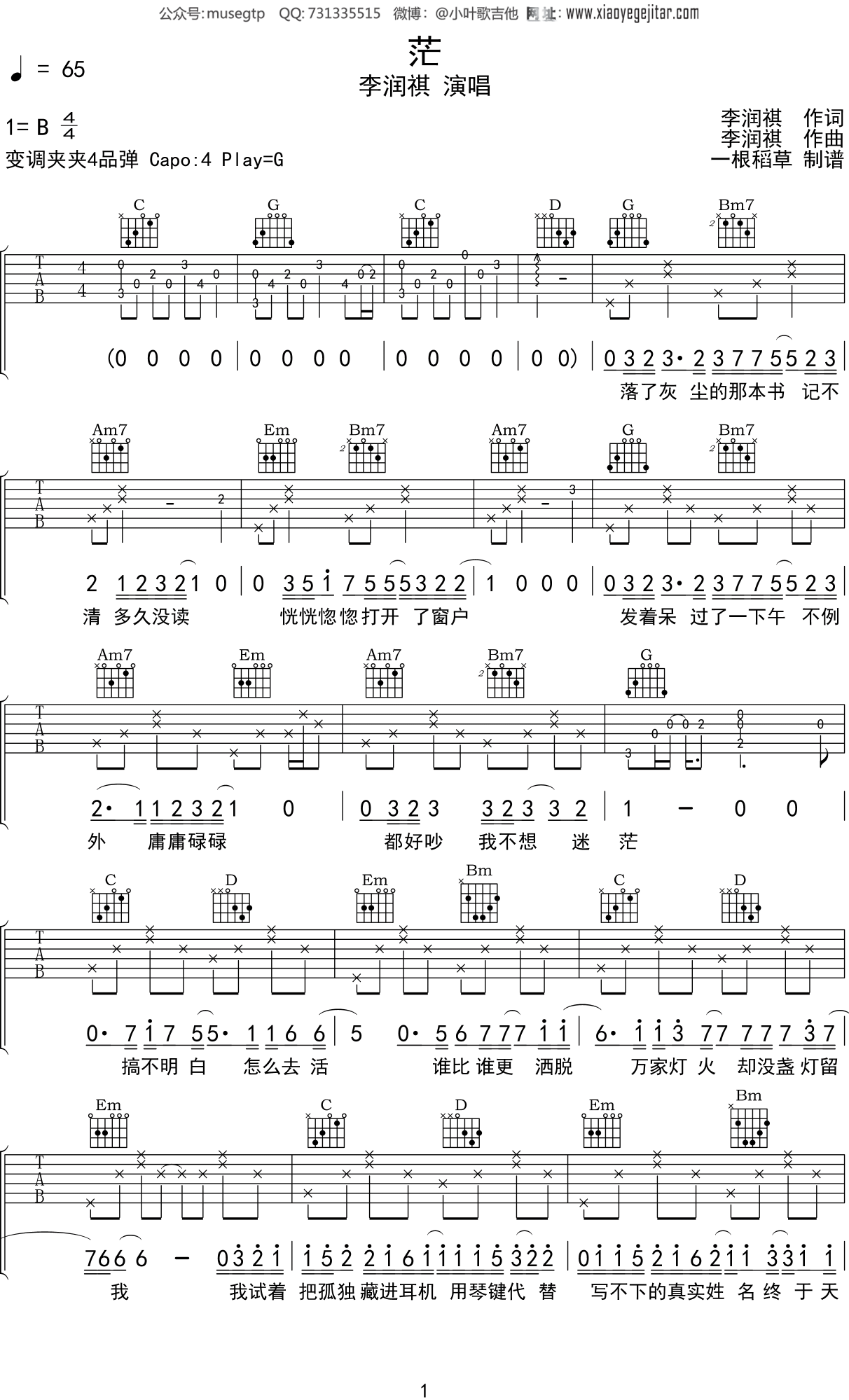 茫吉他谱李润祺山山吉他制谱