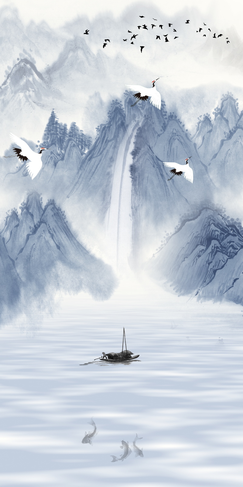 中国风水墨古典山水画素材分享,可做手机屏保,古风插画背景素材