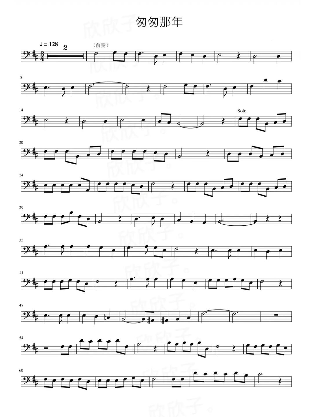 声声慢 大提琴谱 五线谱 电子版 独奏 正谱 崔开潮 c调 附音频