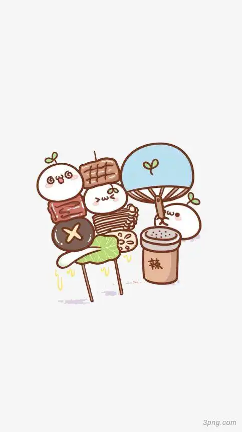炸串手绘卡通烧烤小吃串串烤串肉串宵夜装饰png素材烧烤元素