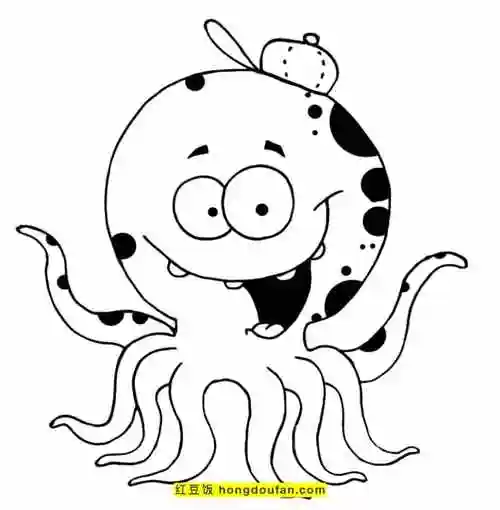 11张一点也不恐怖的可爱的卡通章鱼儿童涂色简笔画-红豆饭小学生简笔