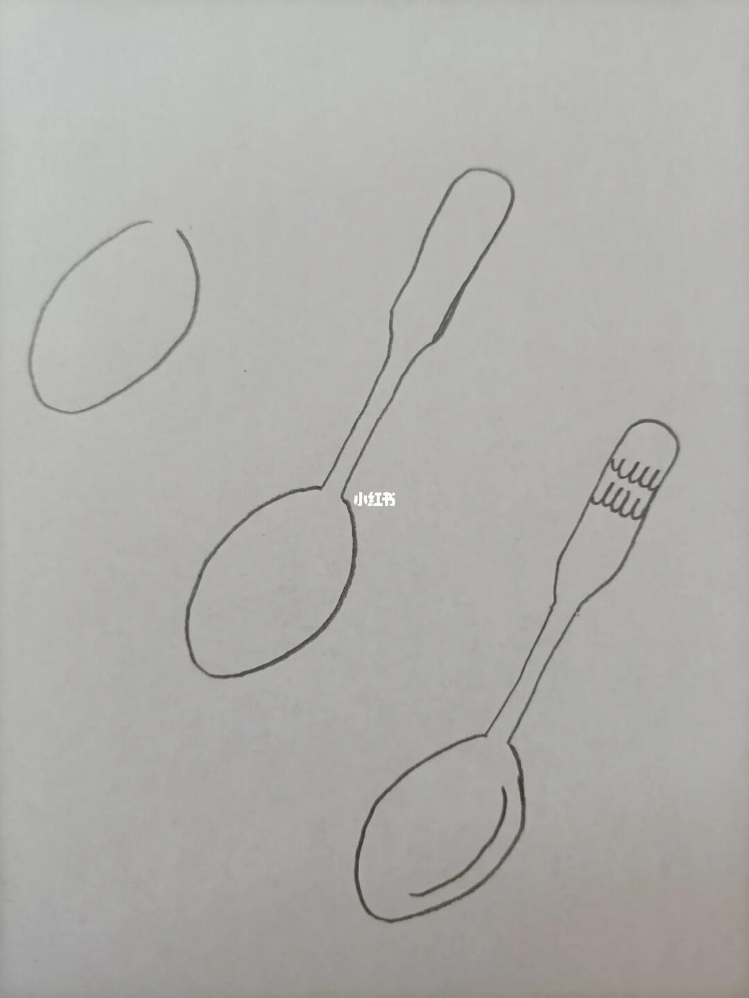 3,接着画一双筷子.2,然后画勺子的眼睛,嘴巴和手.
