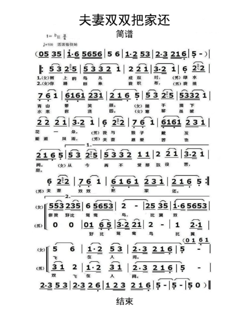 【夫妻双双把家还简谱】夫妻双双把家还歌谱