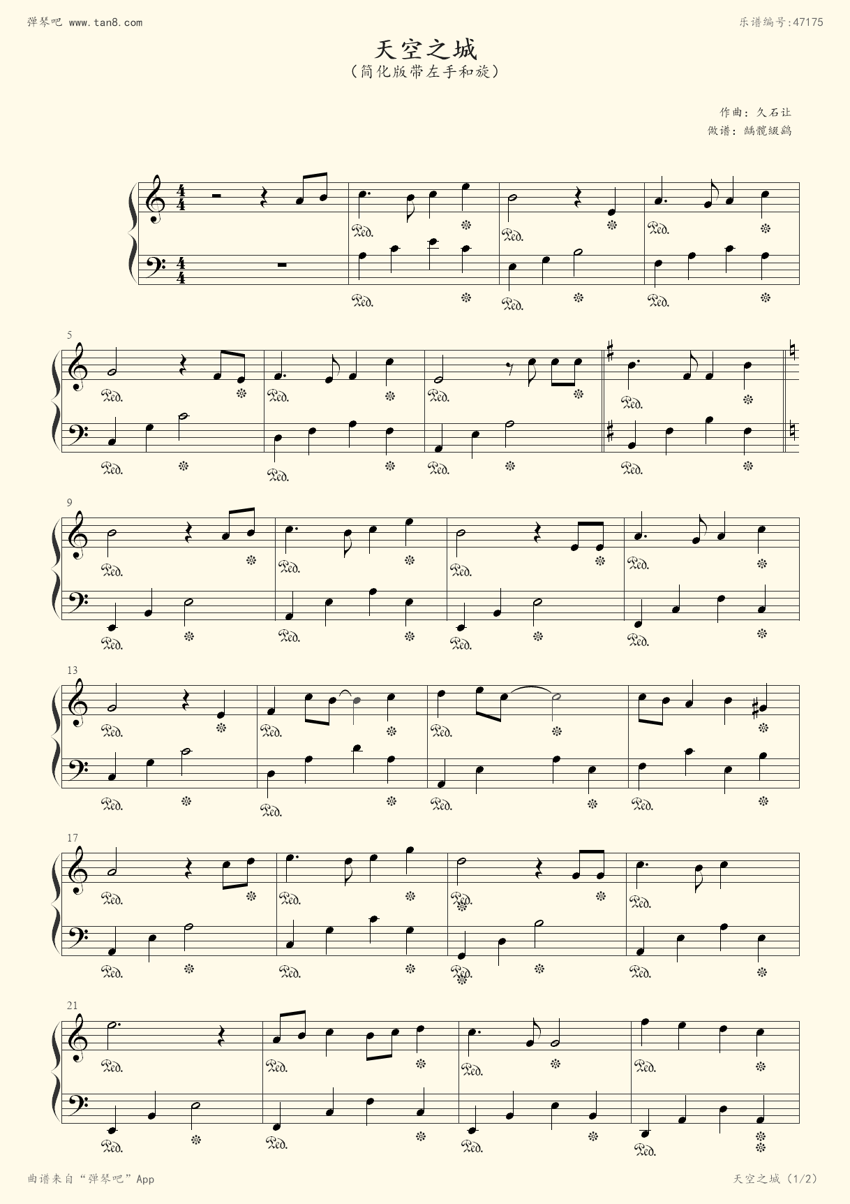 天空之城(c调最简版)久石让(原版)钢琴双手简谱 钢琴谱-天空之城c