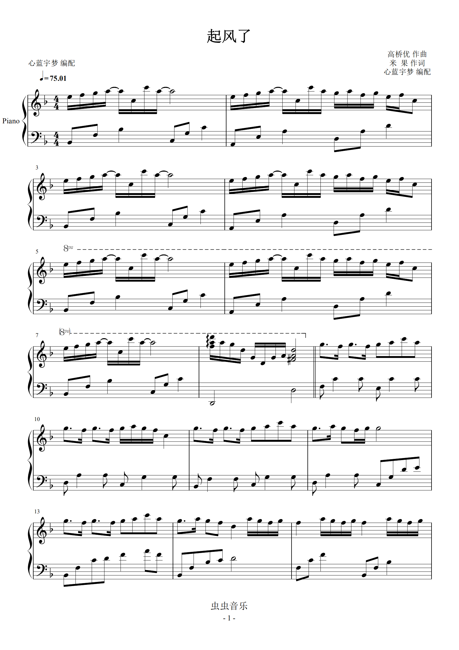 起风了钢琴谱-心蓝宇梦-虫虫钢琴