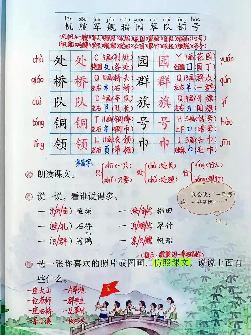 二年级上册语文第二单元《场景歌》笔记,大家都在问的预习笔记用