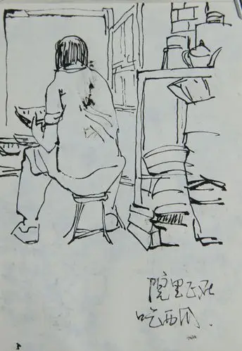 著名摄影家张一群80年代手绘素描速写画稿原作《劳动姿势》包老包真