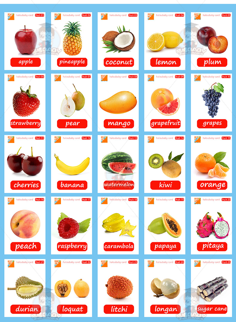 fruits英语水果单词卡片英文闪卡宝宝早教启蒙幼儿园英文教师教具