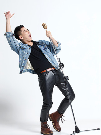 快乐男生拿着麦克风唱歌