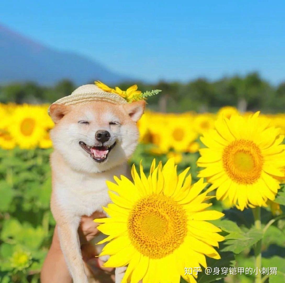 敲可爱卡哇伊治愈系的微笑狗狗向日葵图片