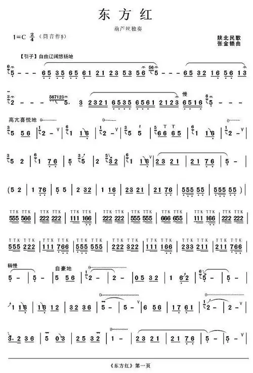 东方红曲谱共3页