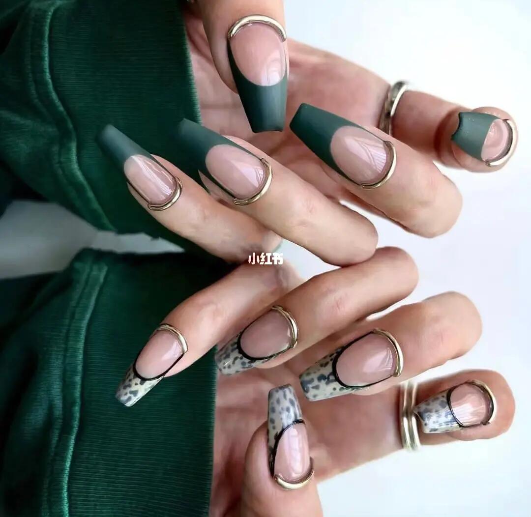 街潮个性涂鸦黑色长款穿戴美甲女可拆卸假指甲成品贴片甲片防水