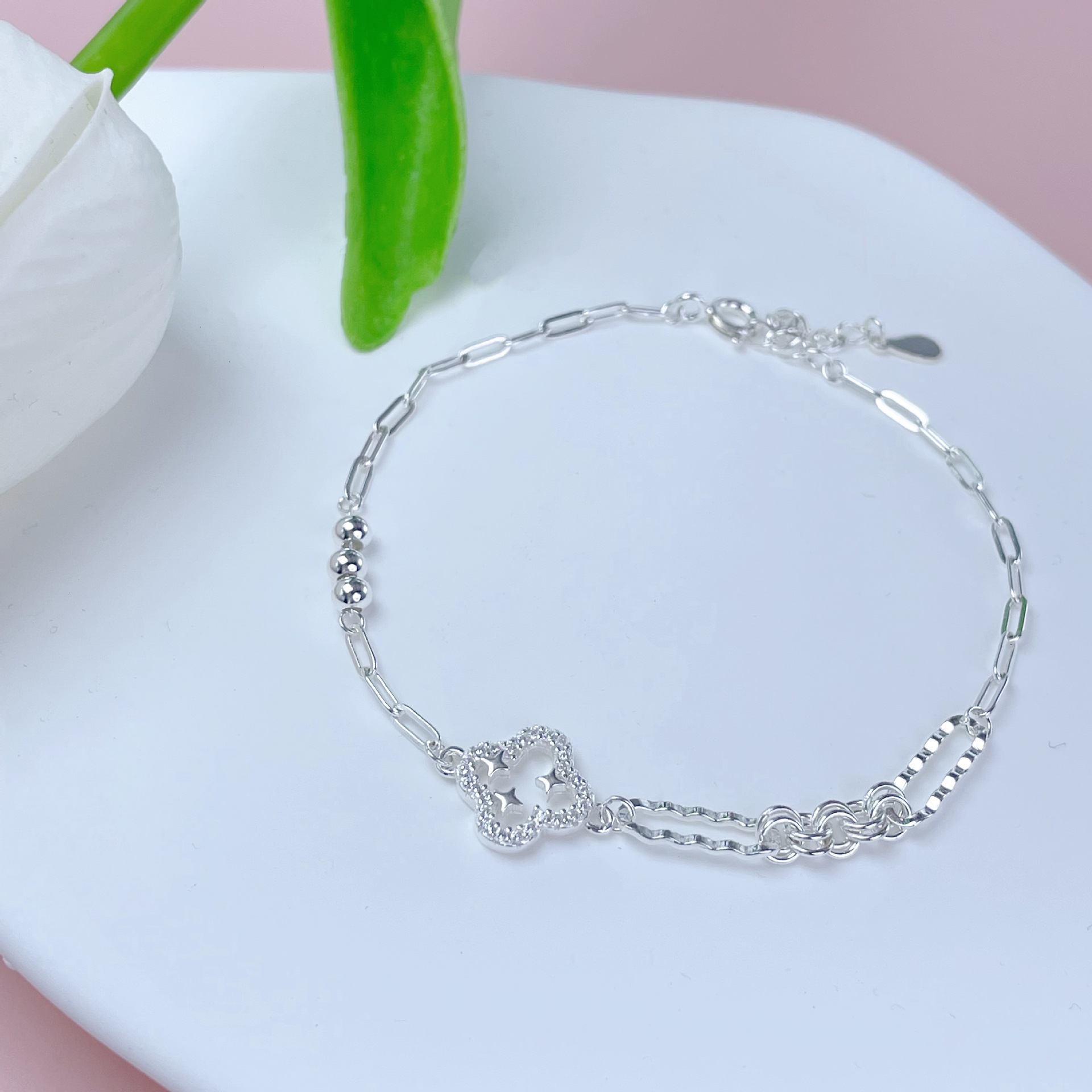 帝博s925纯银四月草多层手链跨境热销不对称拼接简约轻奢饰品配饰