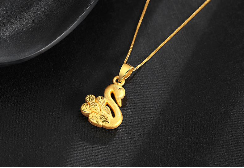 足金999纯金金天鹅黄金吊坠3d硬金时尚新款气质锁骨女项链妈妈款