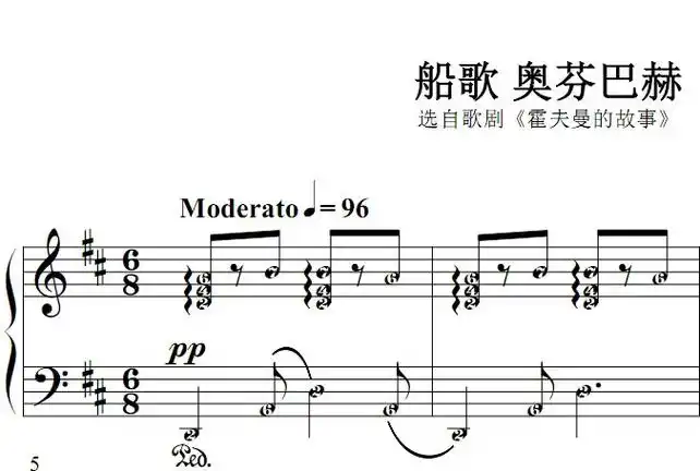 船歌(奥芬巴赫作曲版)[钢琴简谱]《船歌》