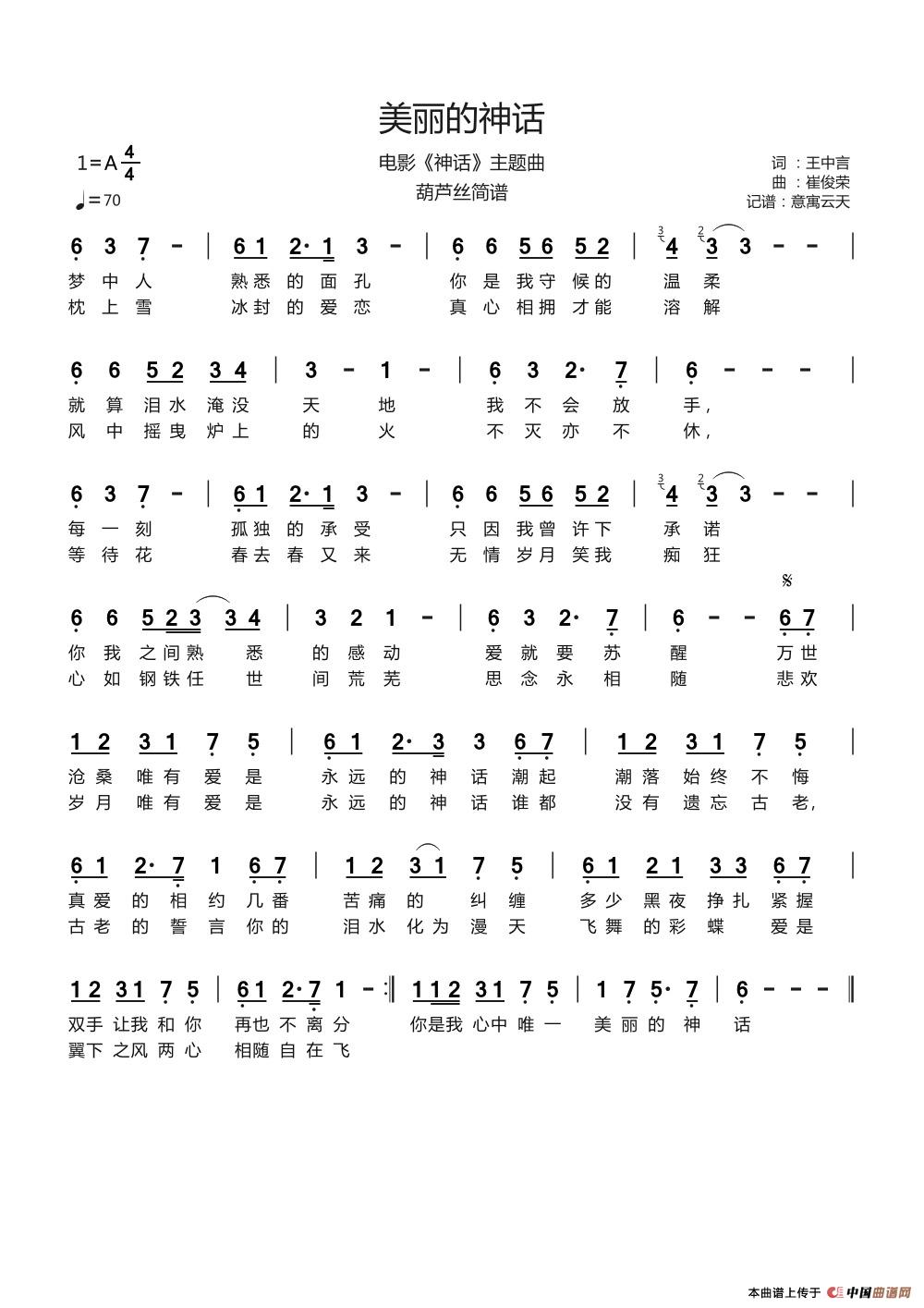 美丽的神话简谱(歌词)-廖昌永/吕薇歌曲-小雨曲谱