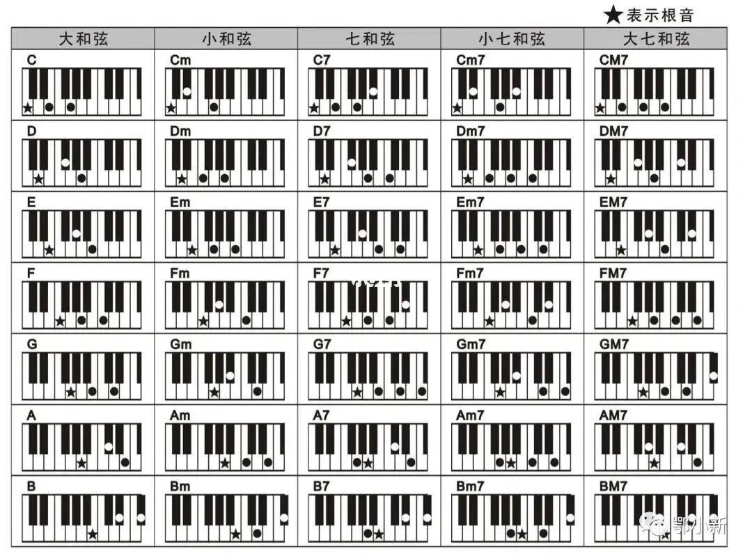 钢琴小白必学|即兴伴奏12个调的基础和弦表 初学即兴伴奏的同学 首先