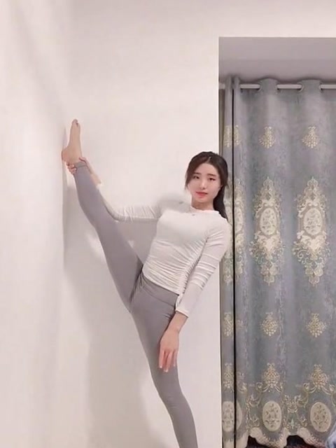 胡静穿浴袍花式压腿但照片看起来只有一米四