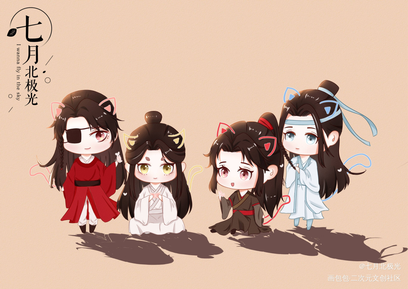 去年画的忘羡和花怜_天官赐福魔道祖师花怜忘羡忘羡立绘平涂日系q版