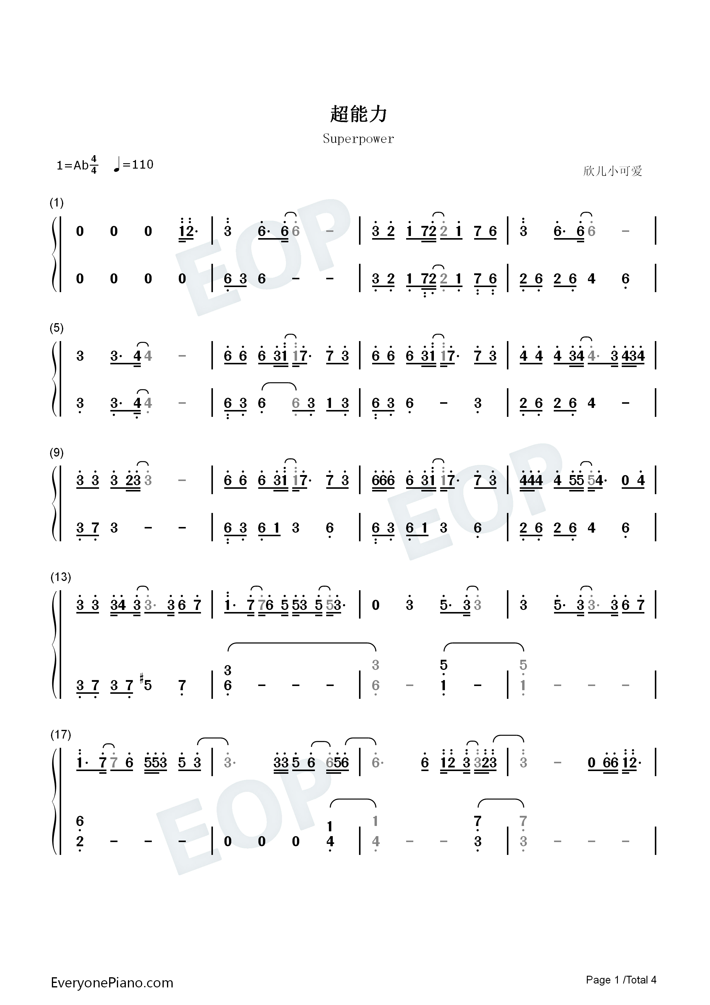 超能力钢琴谱-邓紫棋4