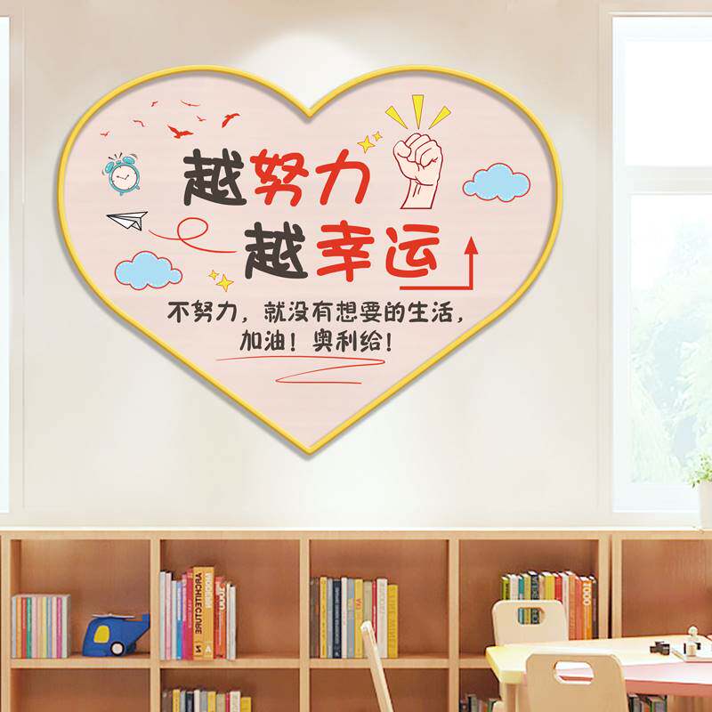 教室文化背景墙装饰布置励志墙贴3d立体墙纸自粘越努力越幸运贴纸