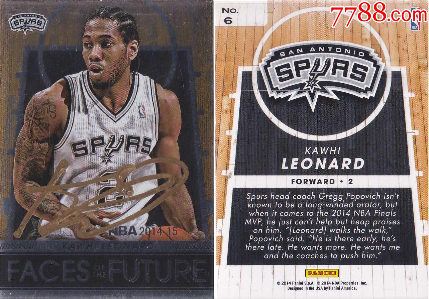 马刺队fmvp小卡 伦纳德亲笔签名照片 裱框 带证书 珍藏