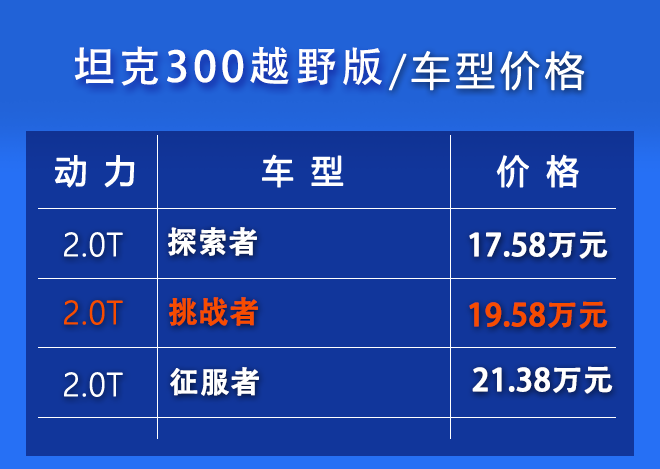 坦克300购车指南:推荐越野版 2.0t 挑战者