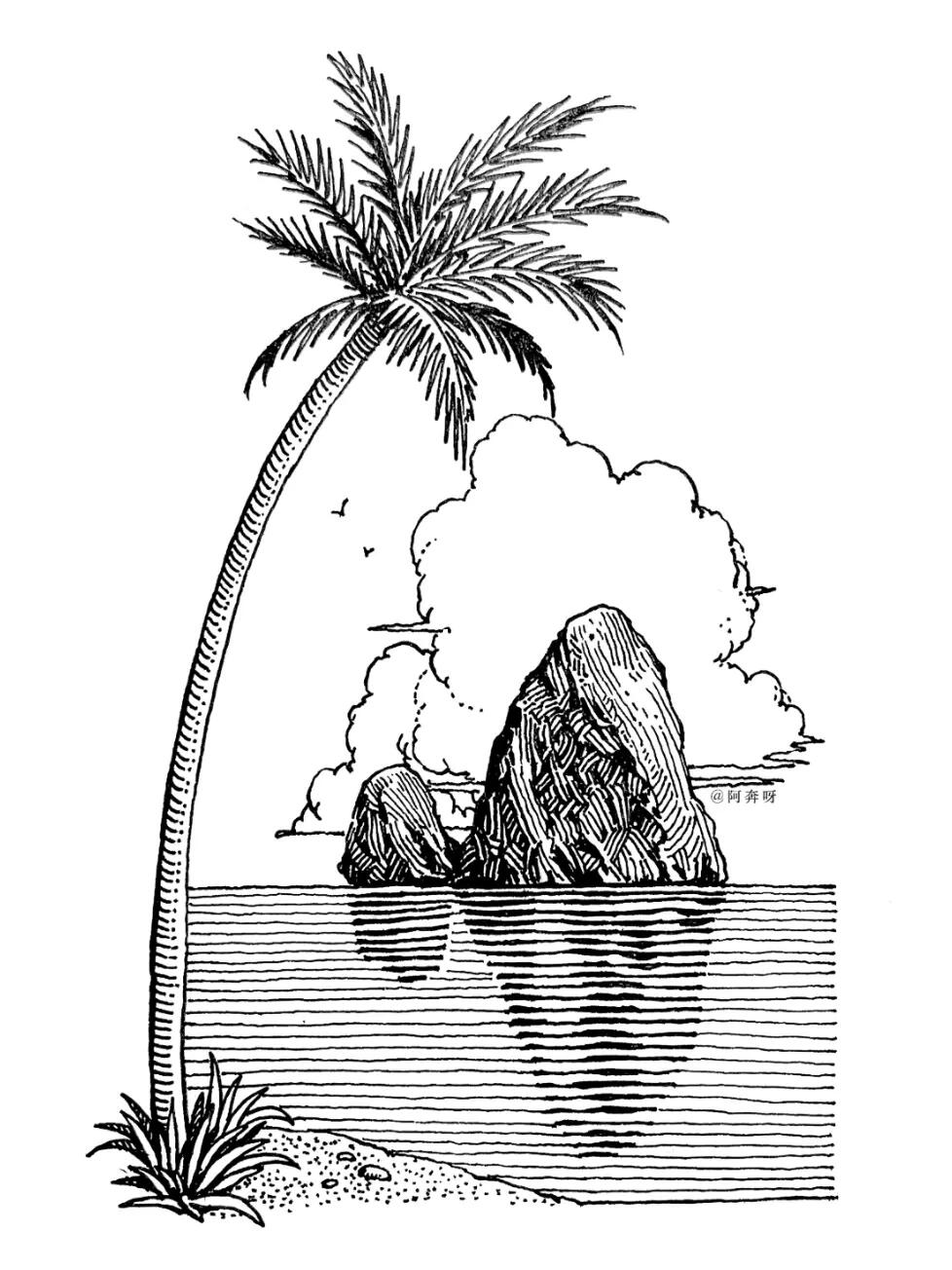 简笔画小岛的画法 简笔画动画教程之小岛和椰子树的绘画分解步骤