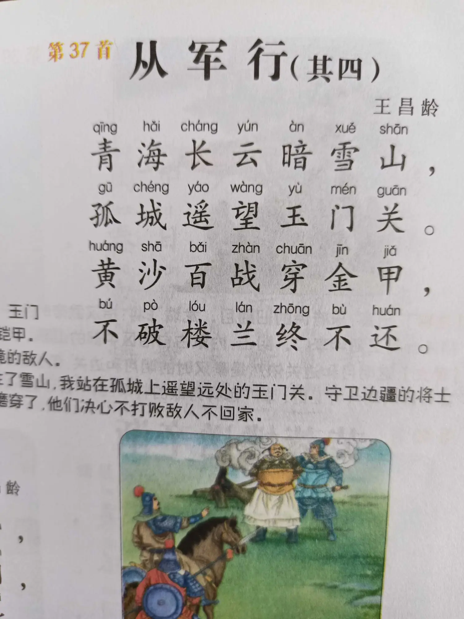 王昌龄《从军行·大漠风尘日色昏》原诗,注释,翻译