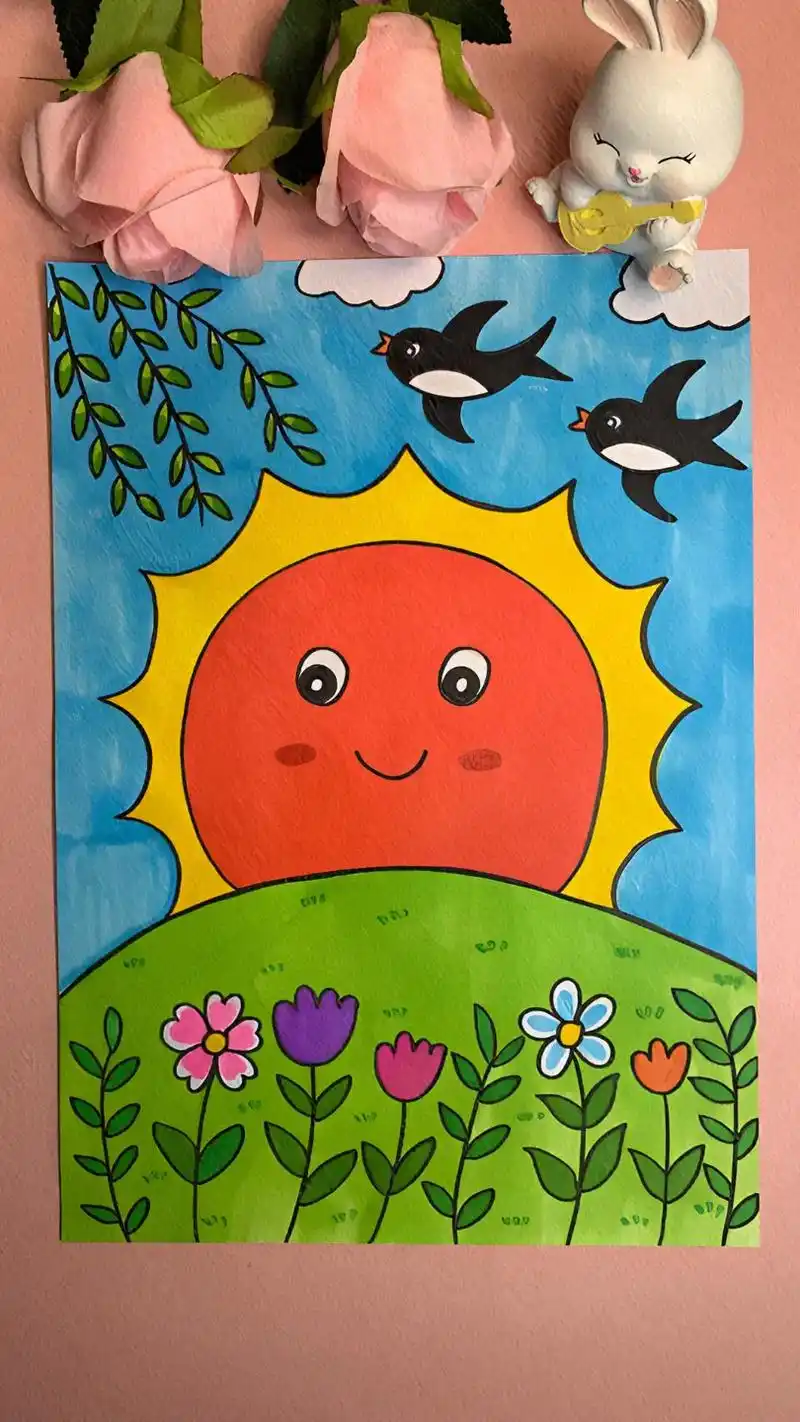 春天主题画日出#一起学画画 #跟着抖音学画画 #简笔画 #育 - 抖音