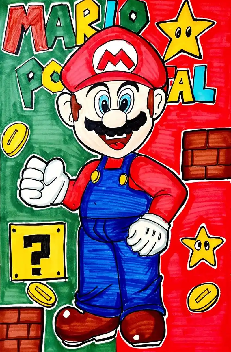 今天分享的是童年回忆,超级玛丽这其实属于儿童画了,蛮简单,小朋友