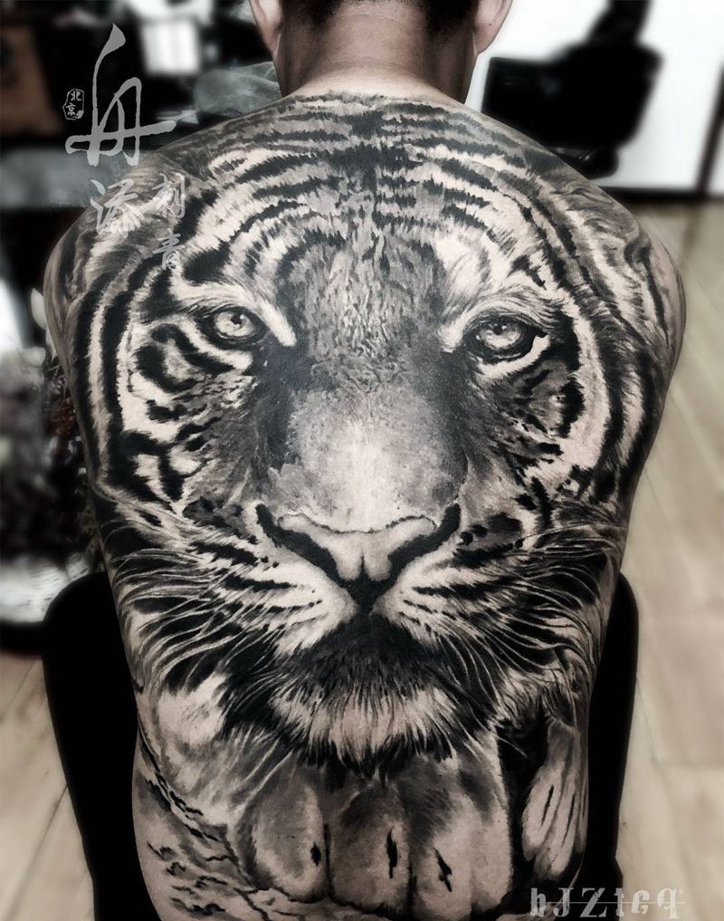 满背虎纹身图片成品背部写实欧美动物老虎原创纹身图案