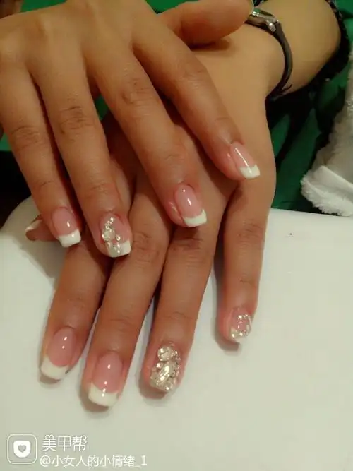 方形白色新娘简约永恒的经典,法式!美甲图片