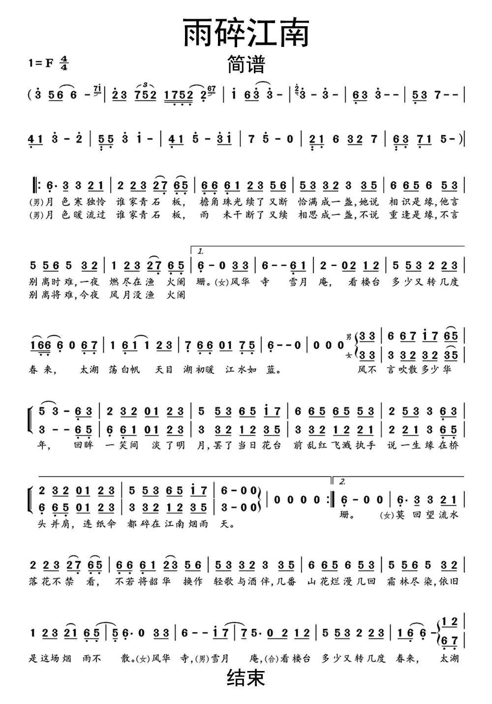 >>雨碎江南简谱曲谱