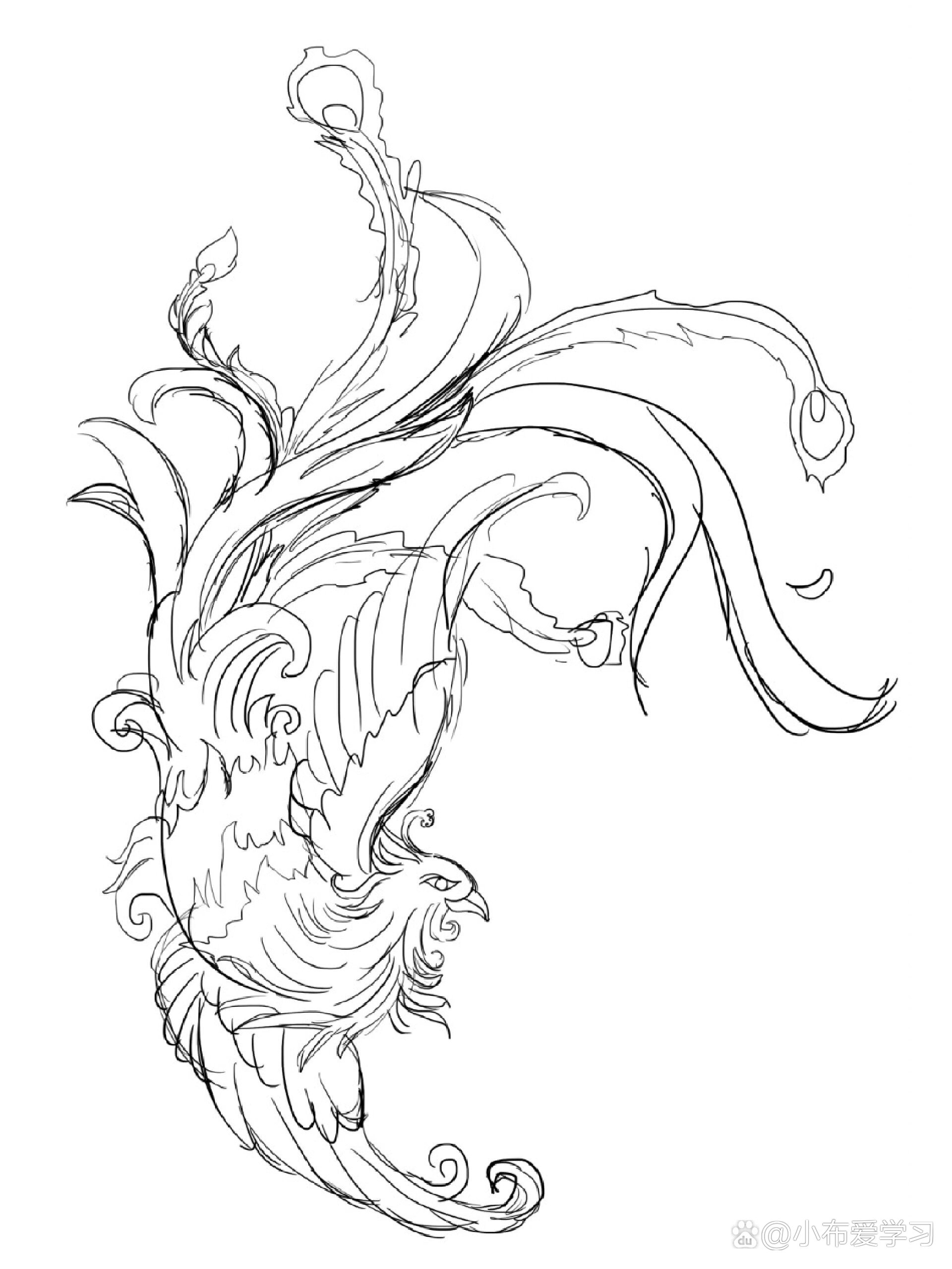 凤凰线稿打卡 尾巴真的是画吐了妥妥的升级版控笔线条练习