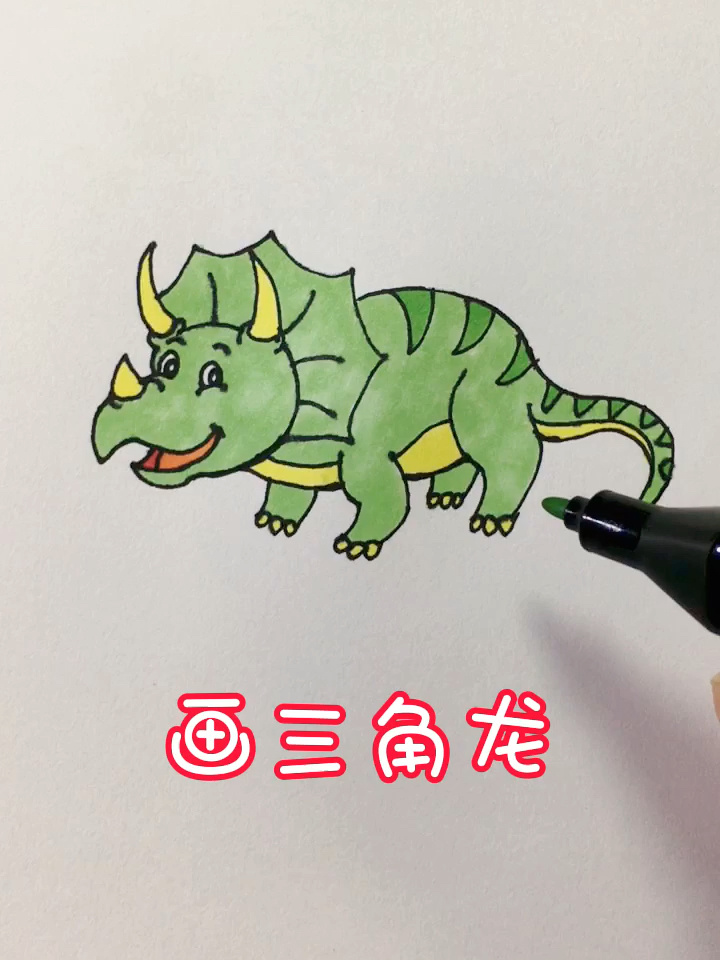 三角龙儿童画教程来啦!一起画恐龙.简单好画的恐龙简笔画,适合 - 抖音