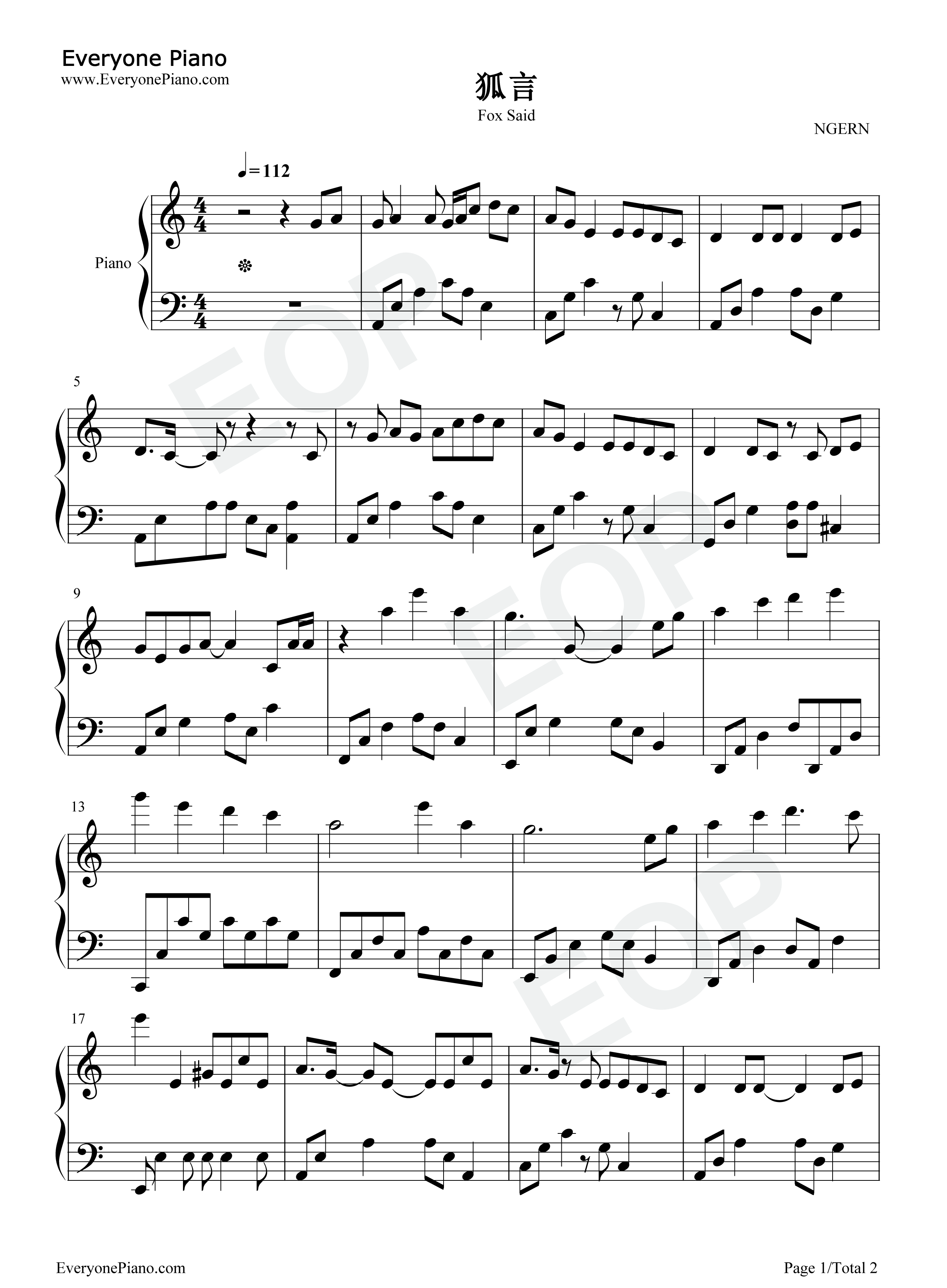白狐 白狐简谱 白狐吉他谱 钢琴谱 查字典简谱网白狐 0.