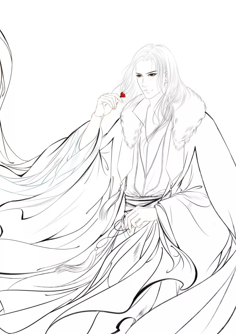 清冷古风美男手绘线稿