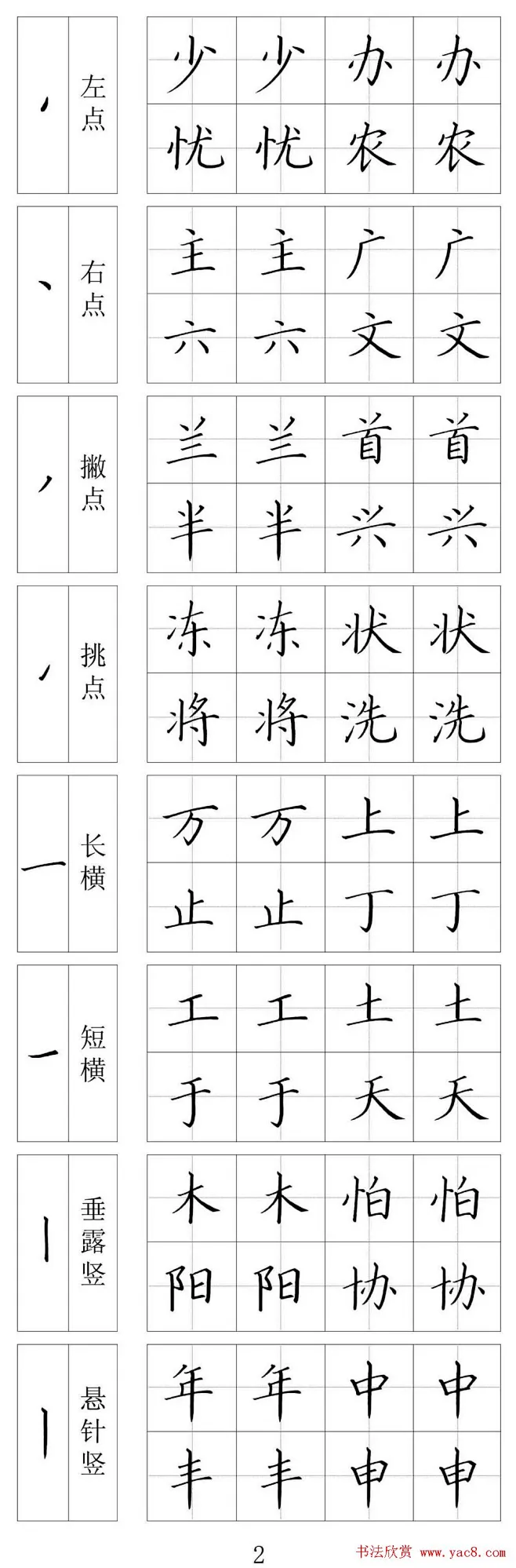 硬笔书法入门:基本笔画相关例字.