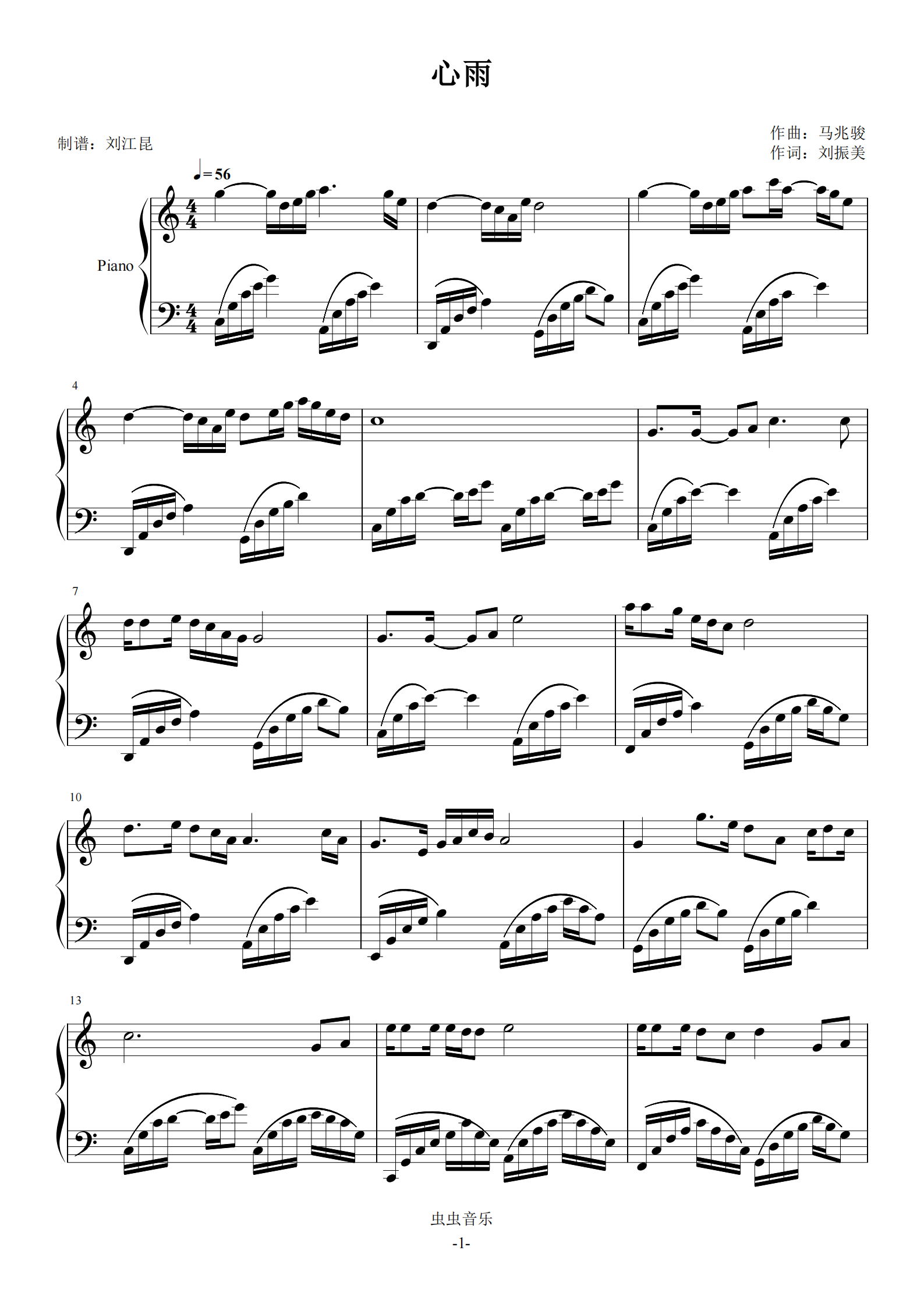 心雨(c调经典版本)钢琴谱-虫虫钢琴