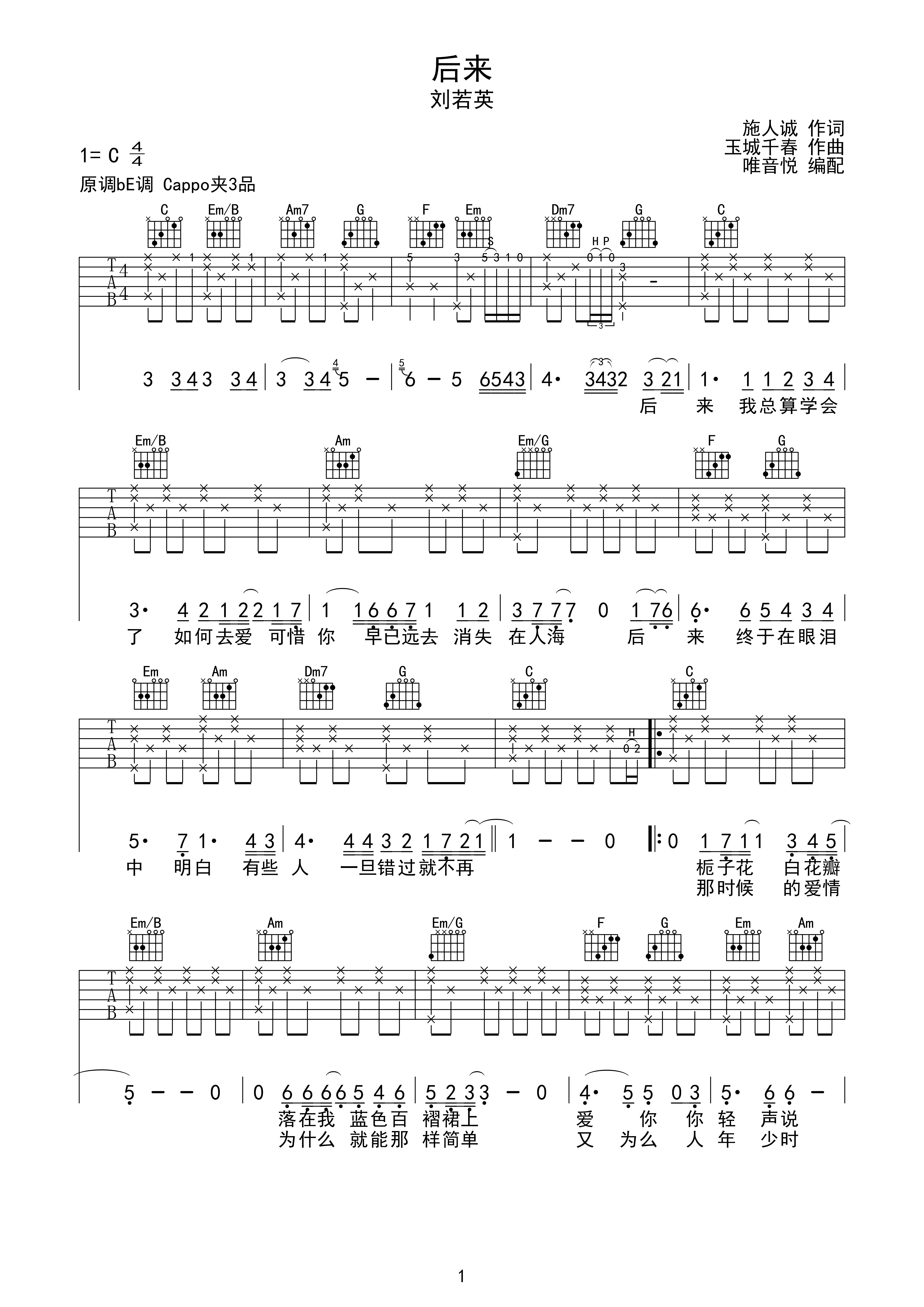 后来c调六线pdf谱吉他谱-虫虫吉他谱免费下载