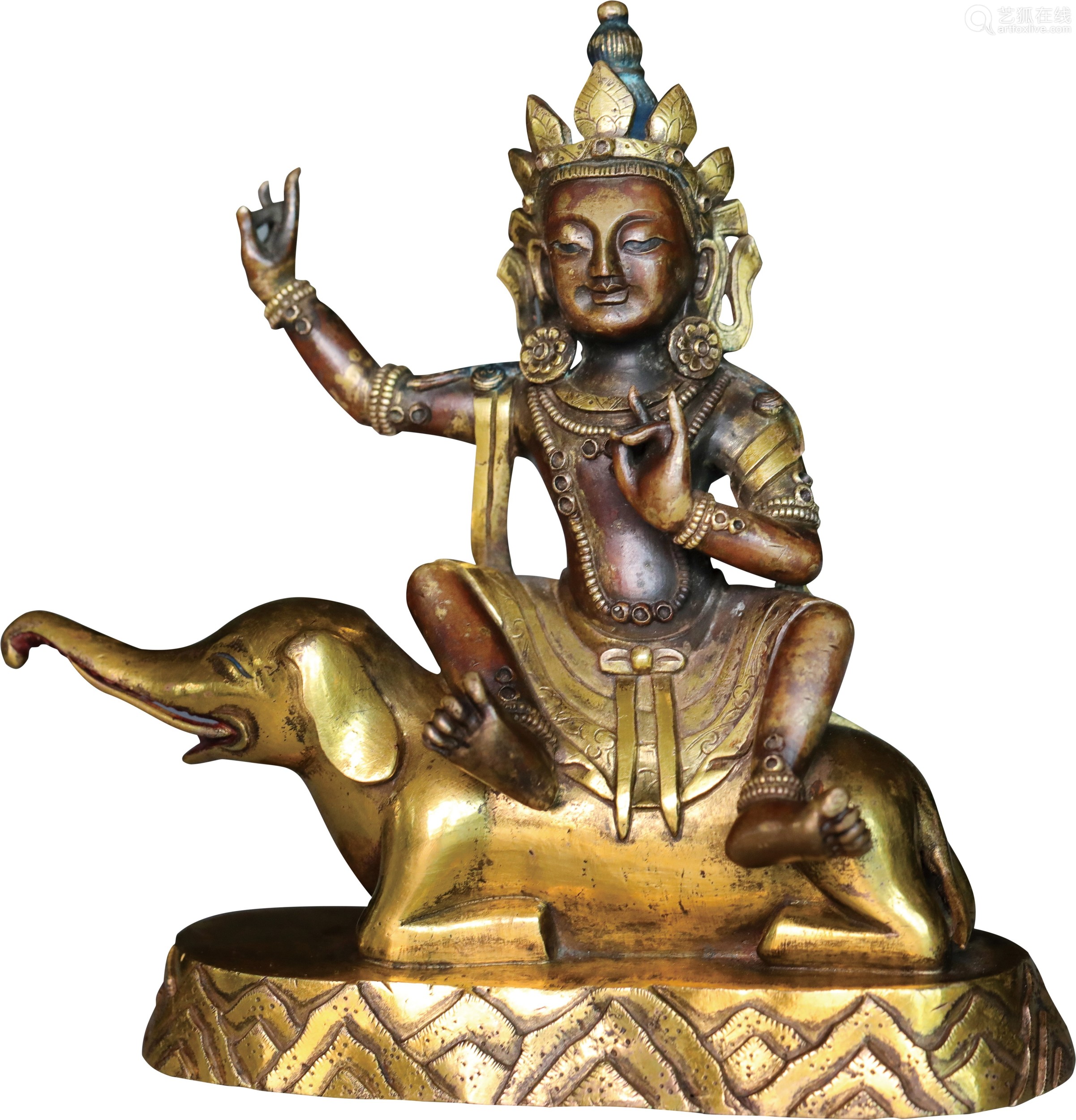 铜鎏金骑象护法