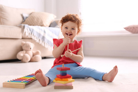 秋天森林里快乐的小女孩.小孩子与秋天叶子.快乐的童年.学校时间.