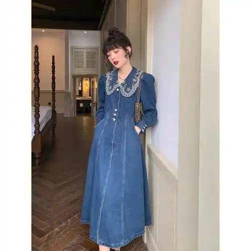 牛仔裙气质连衣裙连衣长款过膝娃娃韩版新款秋装连衣裙